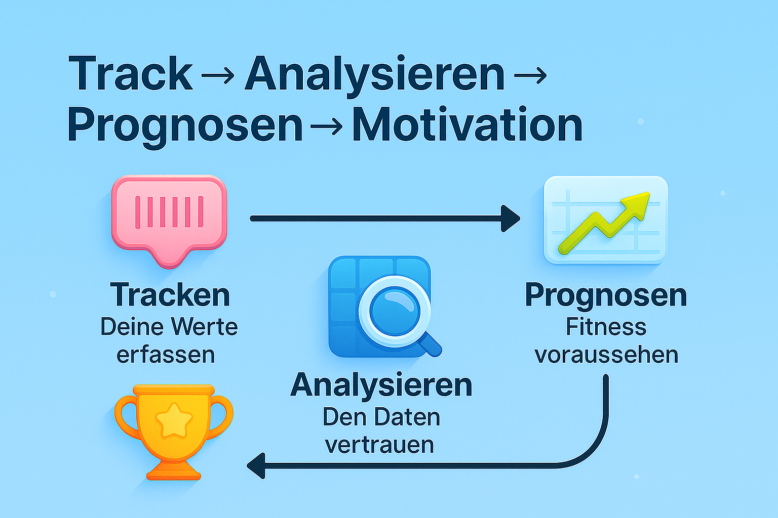 Unsere Algorithmen zeigen dir nicht nur den aktuellen Status, sondern auch Prognosen, wie sich deine Fitness entwickeln kann. So erkennst du Trends früh und bleibst langfristig motiviert.